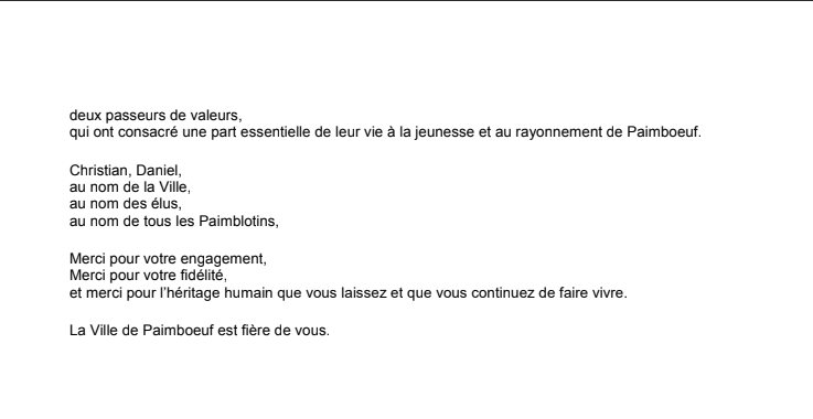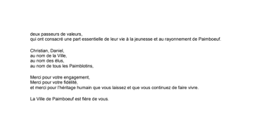 Vous trouverez ci-dessous le mot de Madame le Maire à l’occasion de cette distinction.